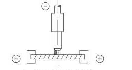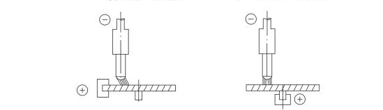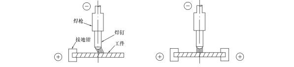 極性是指工件到焊接電源的連接方式,原則上,在螺柱焊接時(shí)焊接電源的正極接工件焊接時(shí)排斥電弧,而焊接電源的負(fù)極接焊槍吸引電弧。如下圖1-1所示